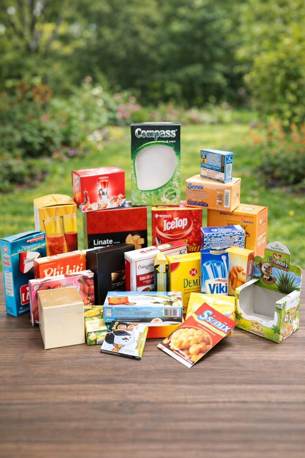Gıda ürünleri, temizlik malzemeleri, kişisel bakım ürünleri için özel tasarımlı kutular.